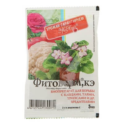 «Фитоверм» — это биопрепарат 4-го поколения, основой которого являются продукты жизнедеятельности почвенных организмов. Эффективно борется со всеми видами клещей, колорадских жуков, репной и капустной белянкой, плодожоркой, пяденицей и всеми видами тли.